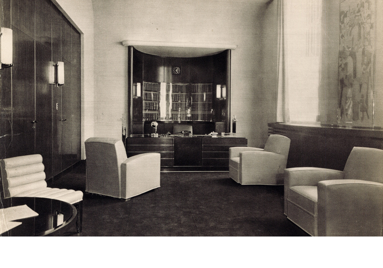 Vue du bureau du maire, photographie de Schall tirée de l'ouvrage "L'Hôtel de Ville de Puteaux", 1934, AMP, BH 863.Il pousse la curiosité jusqu'au bureau du maire où s'installera M. Georges Barthélémy. -