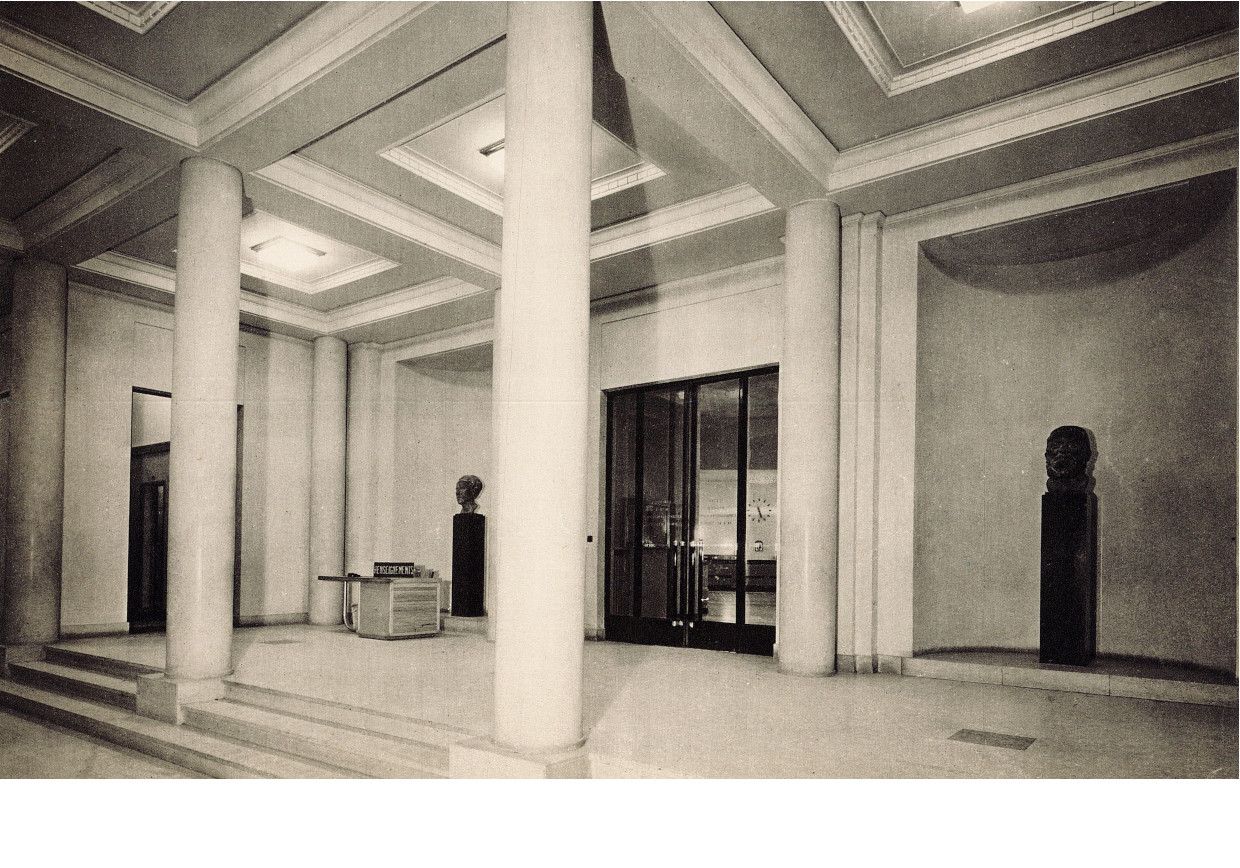 Vue de la salle des colonnes, photographie de Schall tirée de l'ouvrage "L'Hôtel de Ville de Puteaux", 1934, BH 863.Il entre par la salle des colonnes... -